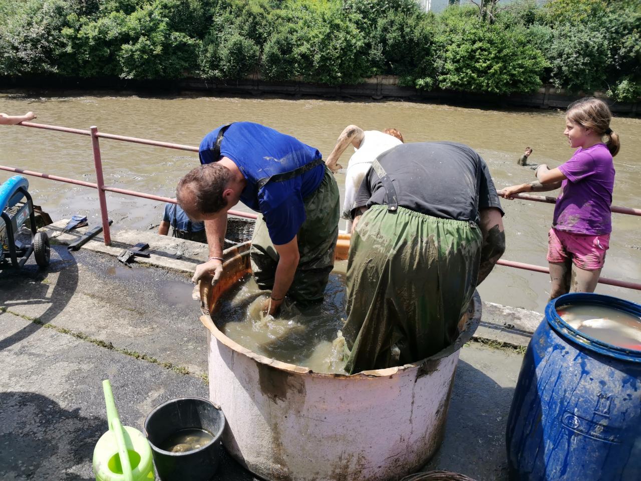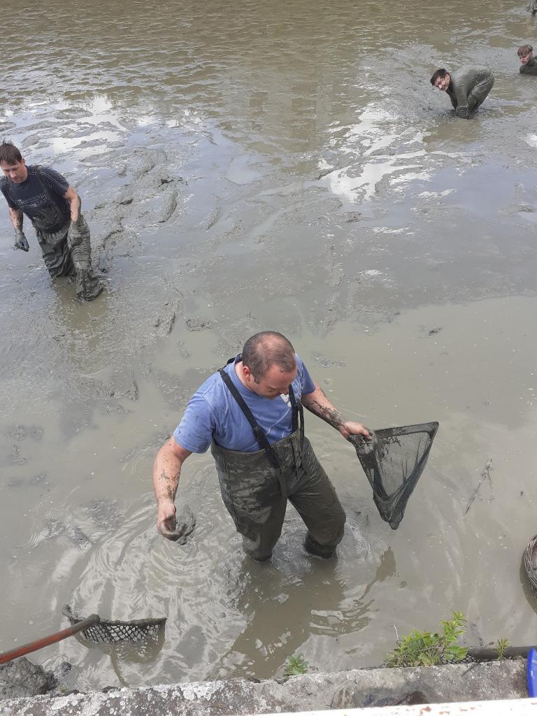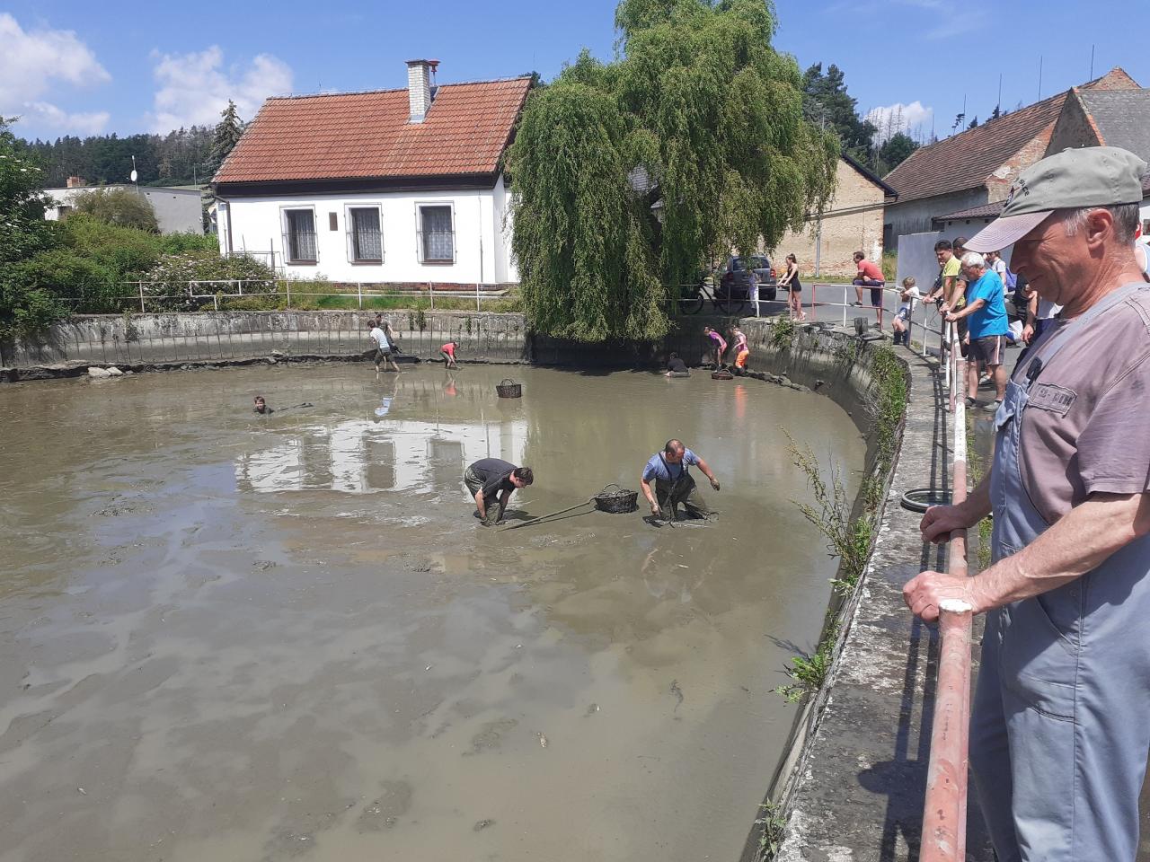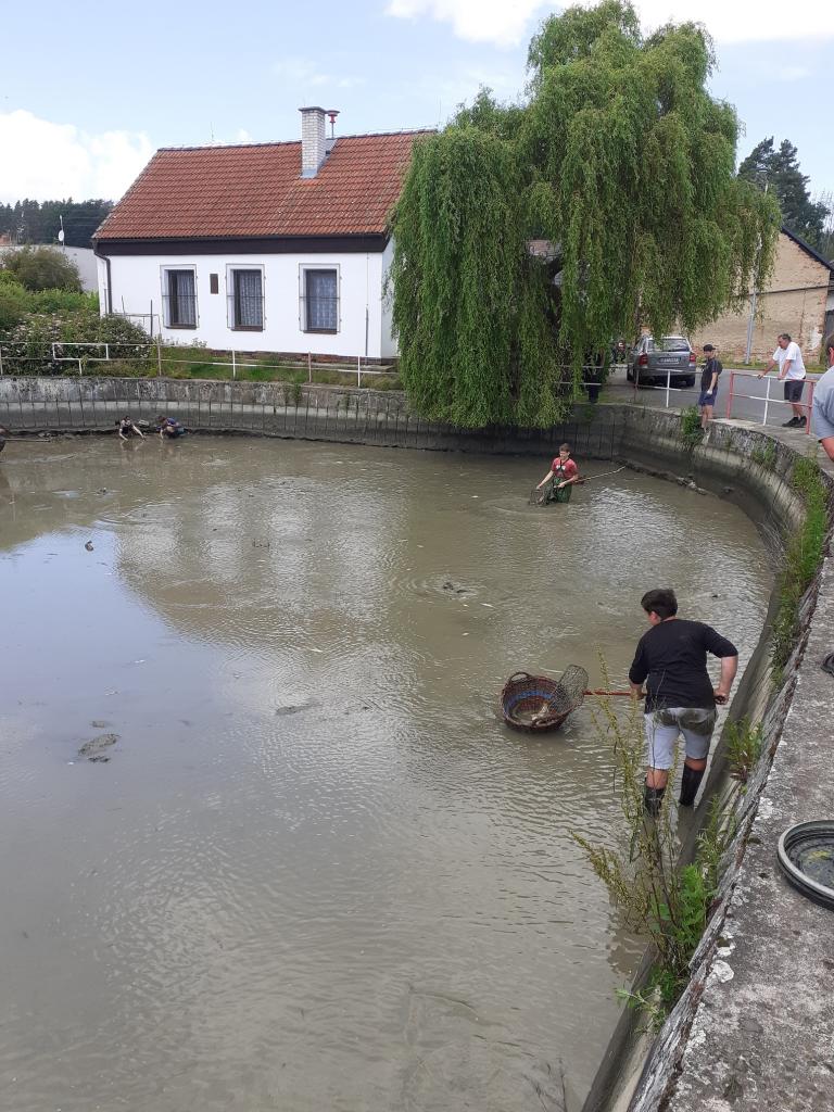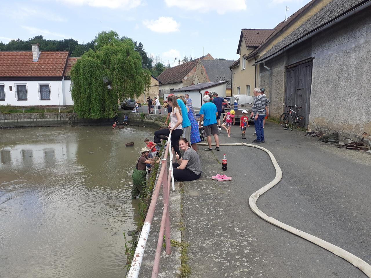 Výlov požární nádrže před plánovanou rekonstrukcí